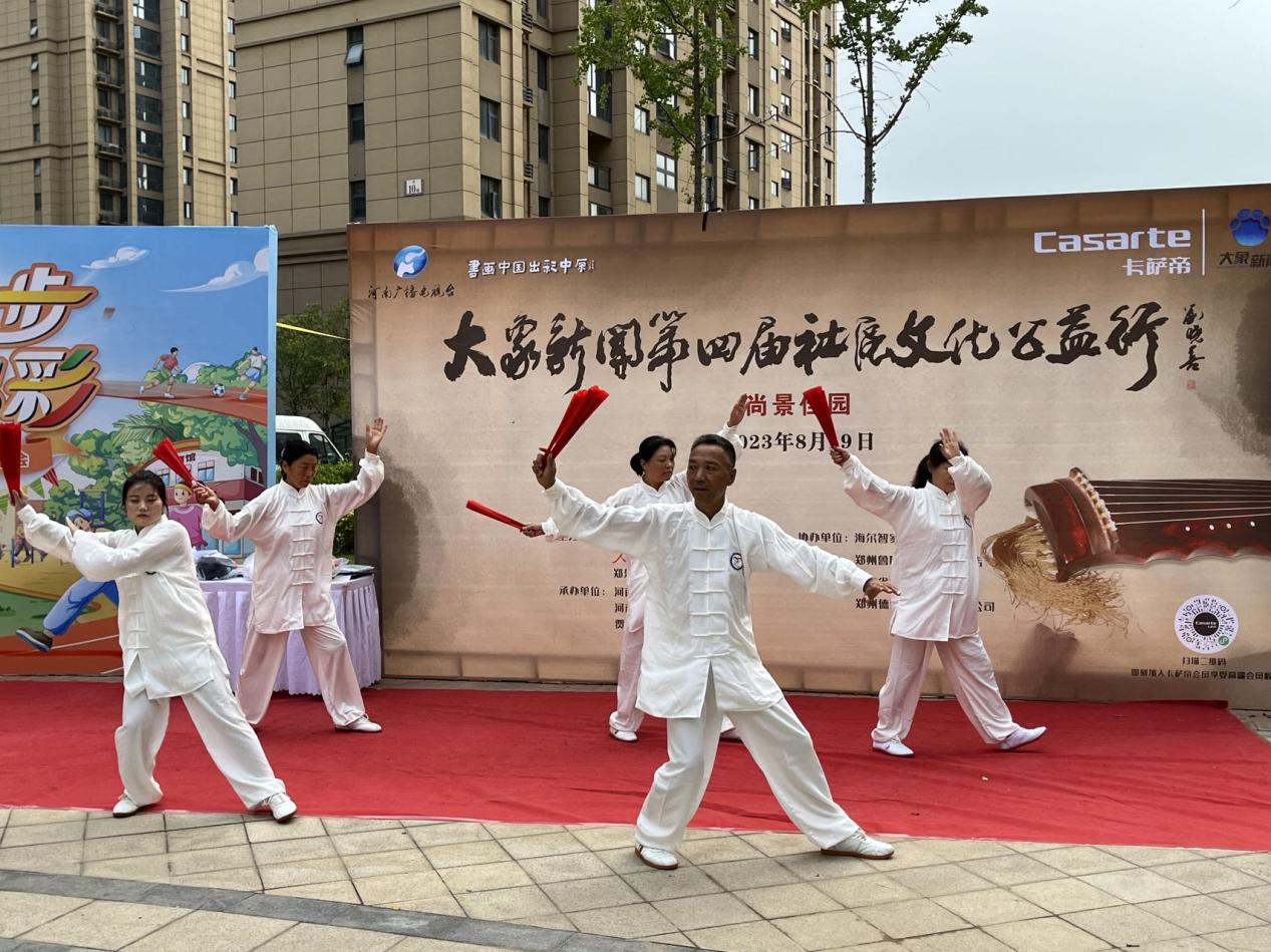 活动中,舞蹈、歌曲、相声等精彩节目轮番上演,歌手们的声音清亮动听,舞蹈演员的动作优美舒展……现场气氛十分热烈,居民时不时拿起手机记录表演的精彩瞬间,掌声和喝彩声连绵不绝,社区居民们和文艺爱好者汇聚于此,载歌载舞,共享演出带来的欢欣快乐。