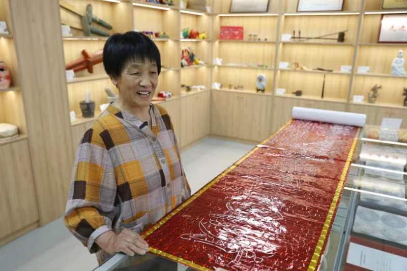 据了解,孙花叶自8岁开始跟外婆学习剪纸至今60多年,自己也热爱剪纸,如今她的剪纸技艺日益纯熟。为传承好宝丰剪纸文化,她从多种渠道搜集《清明上河图》相关材料,潜心研究,于2020年初开始创作,整个创作她用坏了20多个刀片,垫纸的玻璃都摁坏了5块。