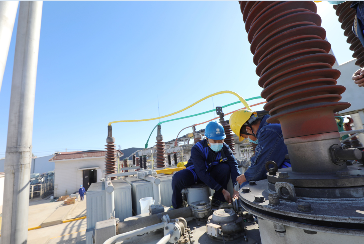 2021年12月29日,二九寒冬前一天,寒风凛凛,滴水成冰,位于中国千强镇、许昌市综合实力第一镇的长葛市大周镇110千伏谢庄变电站内,10余名工作人员正分布在室外设备区和室内高压室对隔离开关、断路器进行调试、试验,紧张有序的实施设备度冬检测,确保主网设备度冬供电无虞。