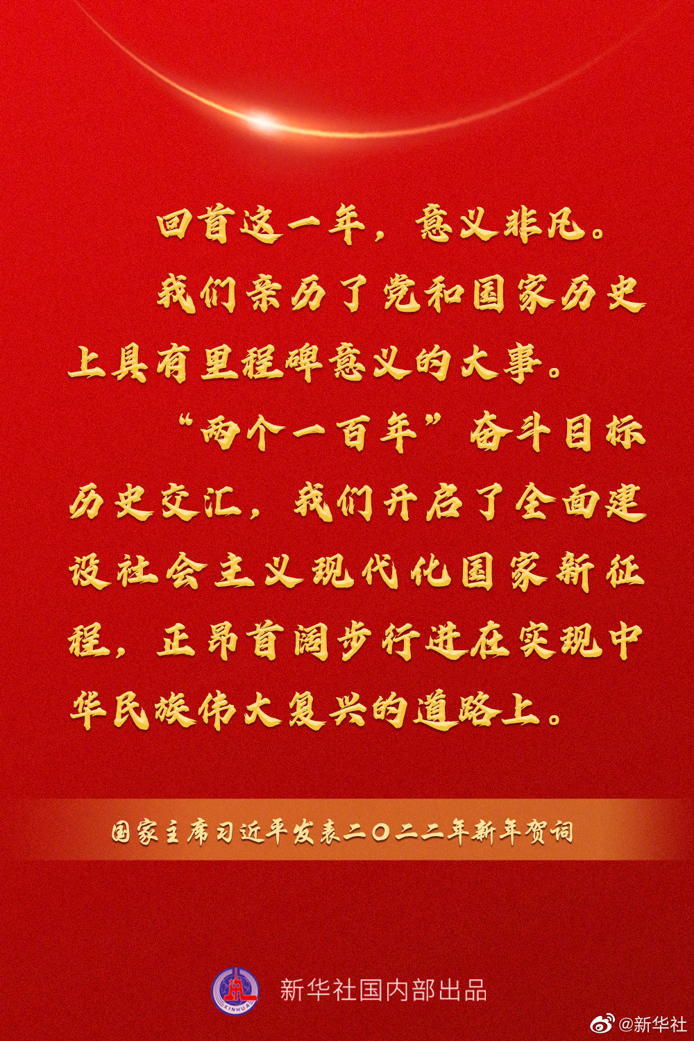 原标题:国家主席习近平发表二〇二二年新年贺词,一起来看金句