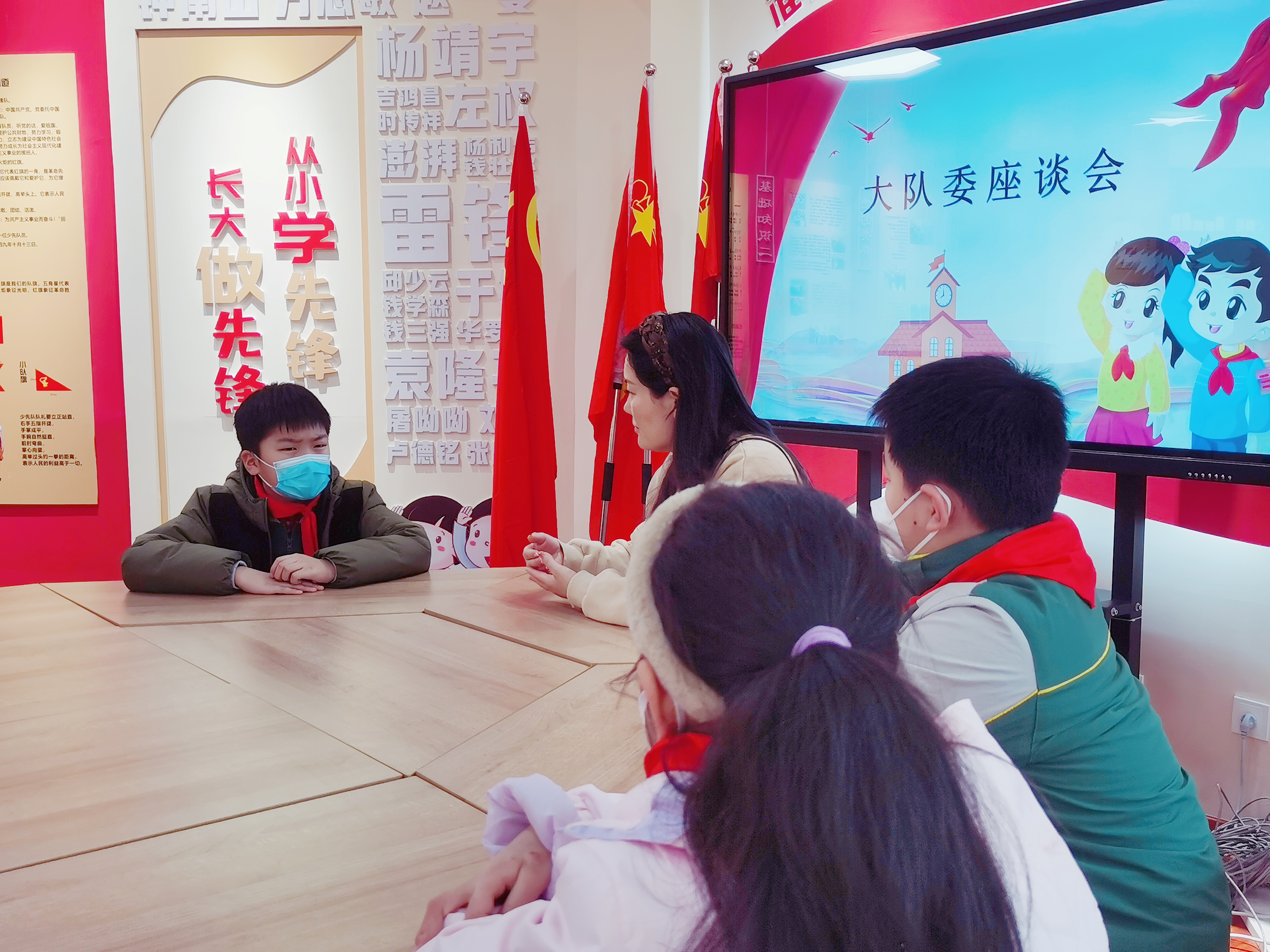 大队委座谈会上,大队辅导员和小队委们敞开心扉谈四个月的居家学习状态、开学后的上课状态、了解班级同学身上闪光点,鼓励队委们挖掘身边同学的好人好事、文明行为等,收集上报到大队部,由大队部进行表彰,带动更多的孩子以积极饱满的精神状态投入学校生活。
