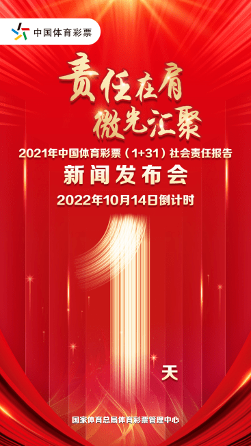无愧今朝使命,责任在肩;不负公益初心,微光汇聚。2021年中国体育彩票(1+31)社会责任报告(以下简称“报告”)新闻发布会,将于10月14日在国家体彩中心举行。届时,国家体育总局经济司领导、国家体彩中心领导、社会责任专家、彩票行业专家及人民网、新华网、《中国体育报》《国家彩票》杂志等多家媒体记者将齐聚一堂,共同回顾体彩砥砺奋进的发展历程,探讨责任彩票建设的未来。