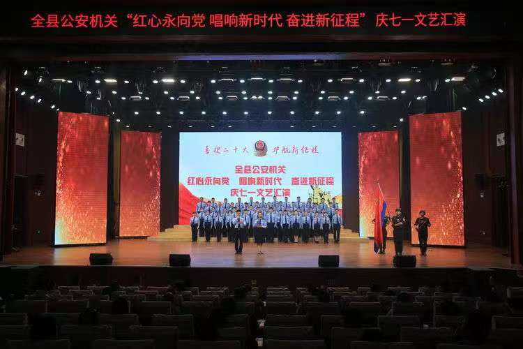 7月1日下午,河南省淇县公安局举行“红心永向党、唱响新时代、奋进新征程”文艺汇演。淇县县委常委、政法委书记郭琪,副县长、公安局长贾海波,县法院、县检察院主要领导,市公安局政治部副主任乾宏伟,县委组织部、宣传部、政法委相关领导及县公安局在家的班子成员、立功受奖民辅警代表及家属等共计300余人参加并观看文艺汇演。