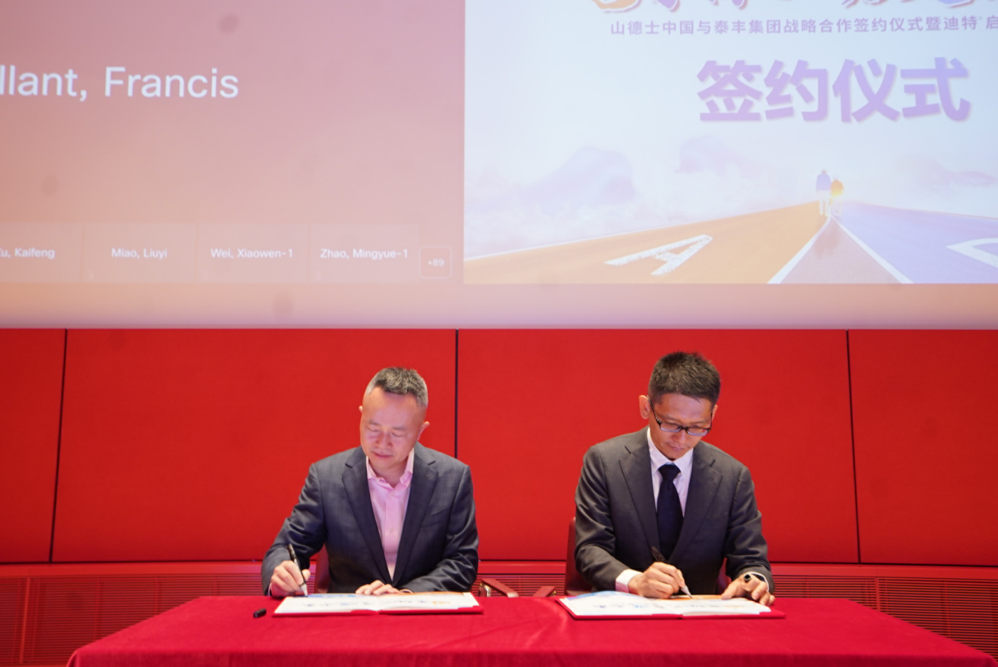 西藏天晟泰丰董事长徐攀峰先生与山德士大中华区首席财务官郭森先生签约