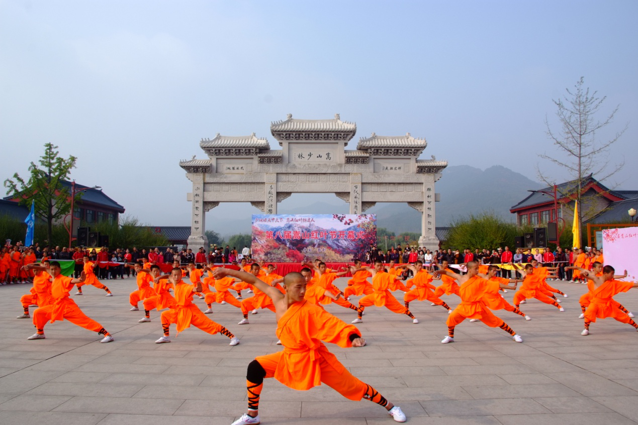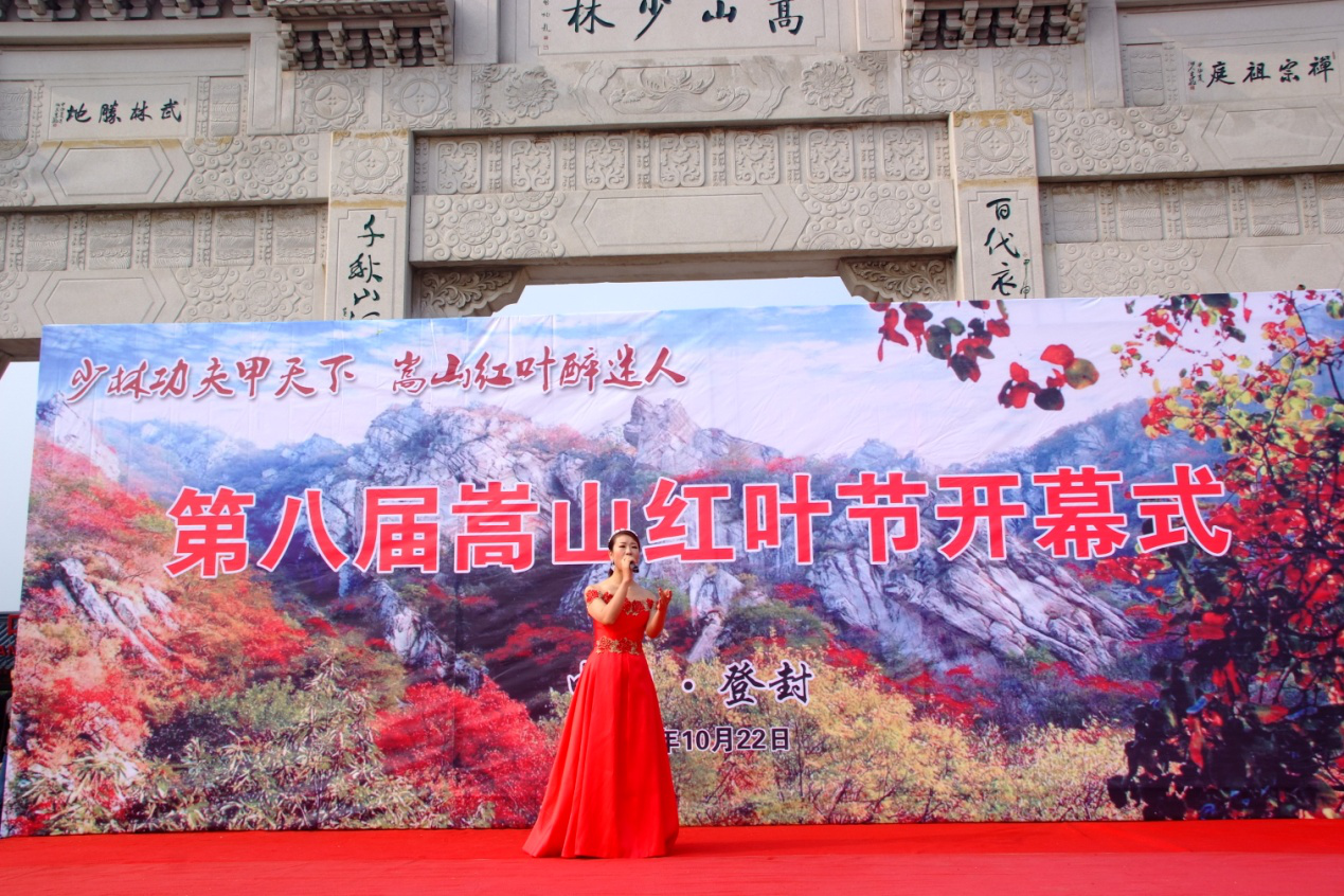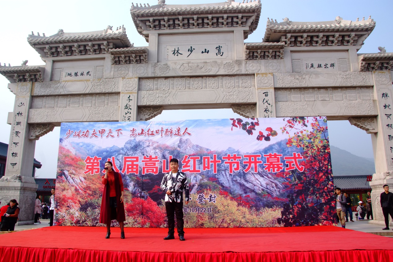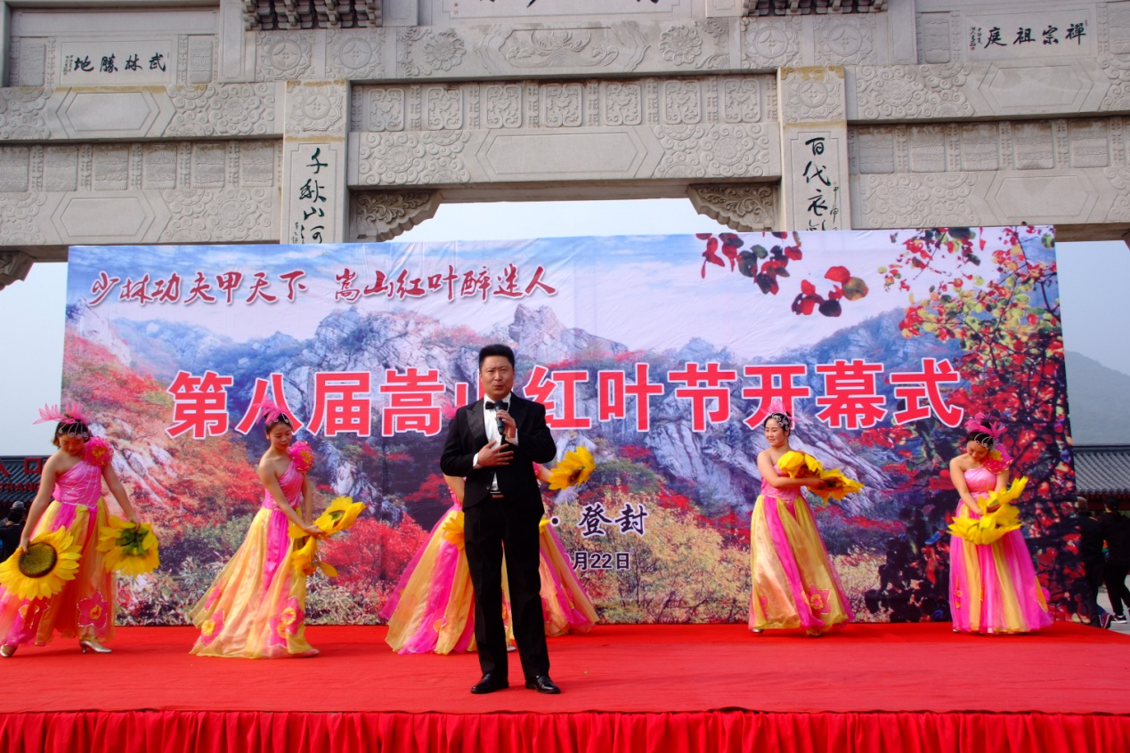 开幕式上,嵩山景区相关领导、媒体及渠道商代表发表了热情洋溢的讲话,《牧羊曲》、《嵩山红叶情》、《祝福祖国》及《牵手嵩山》等歌曲的演绎,助推了游客高昂的激情,少林景区的秋日充满了欢乐和热烈的气氛。