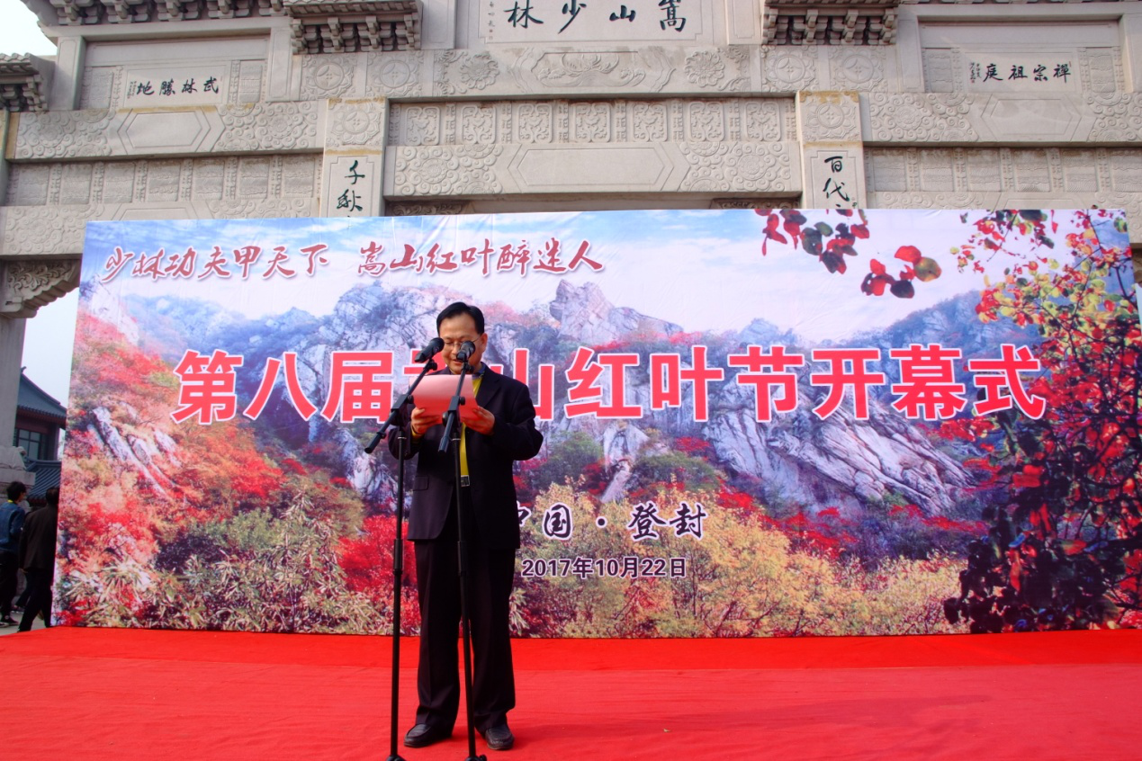 (图:第八届嵩山红叶节开幕式上景区领导致辞)