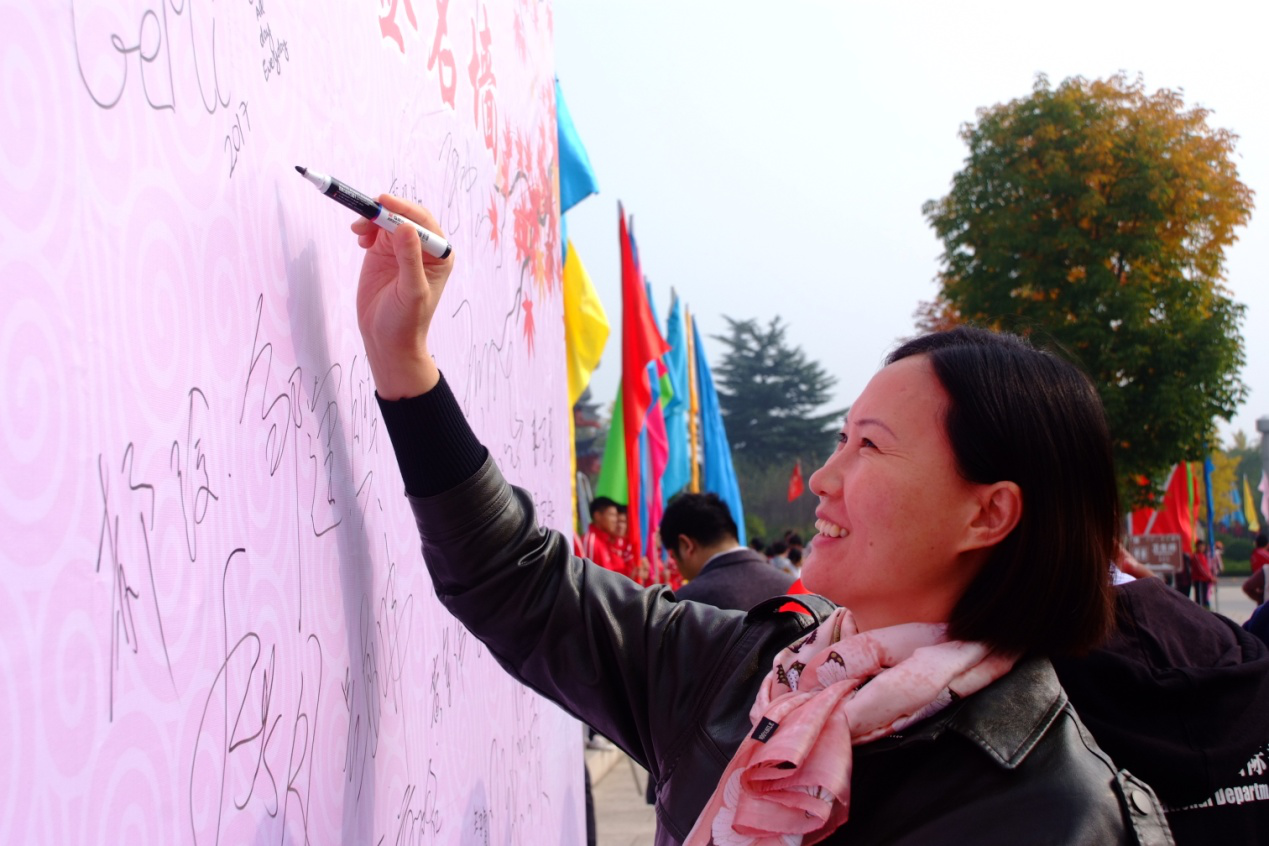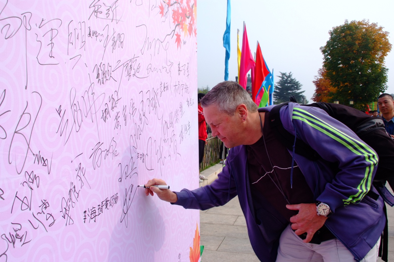 (图:中外游客热情参与嵩山红叶签名活动)