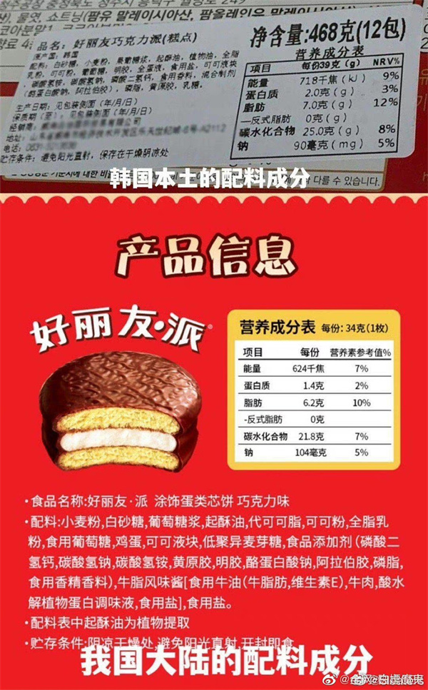 另有资料显示,好丽友回应中称的“仅在去年9月对部分派类产品价格进行了调整”,记者查询确有其事。不过,网友对于好丽友针对配料和价格的“双标”行为的解释回应并不买账,甚至有网友直接贴出了韩国本土和国内(中国)产品配料表的对比图对好丽友进行“石锤”。