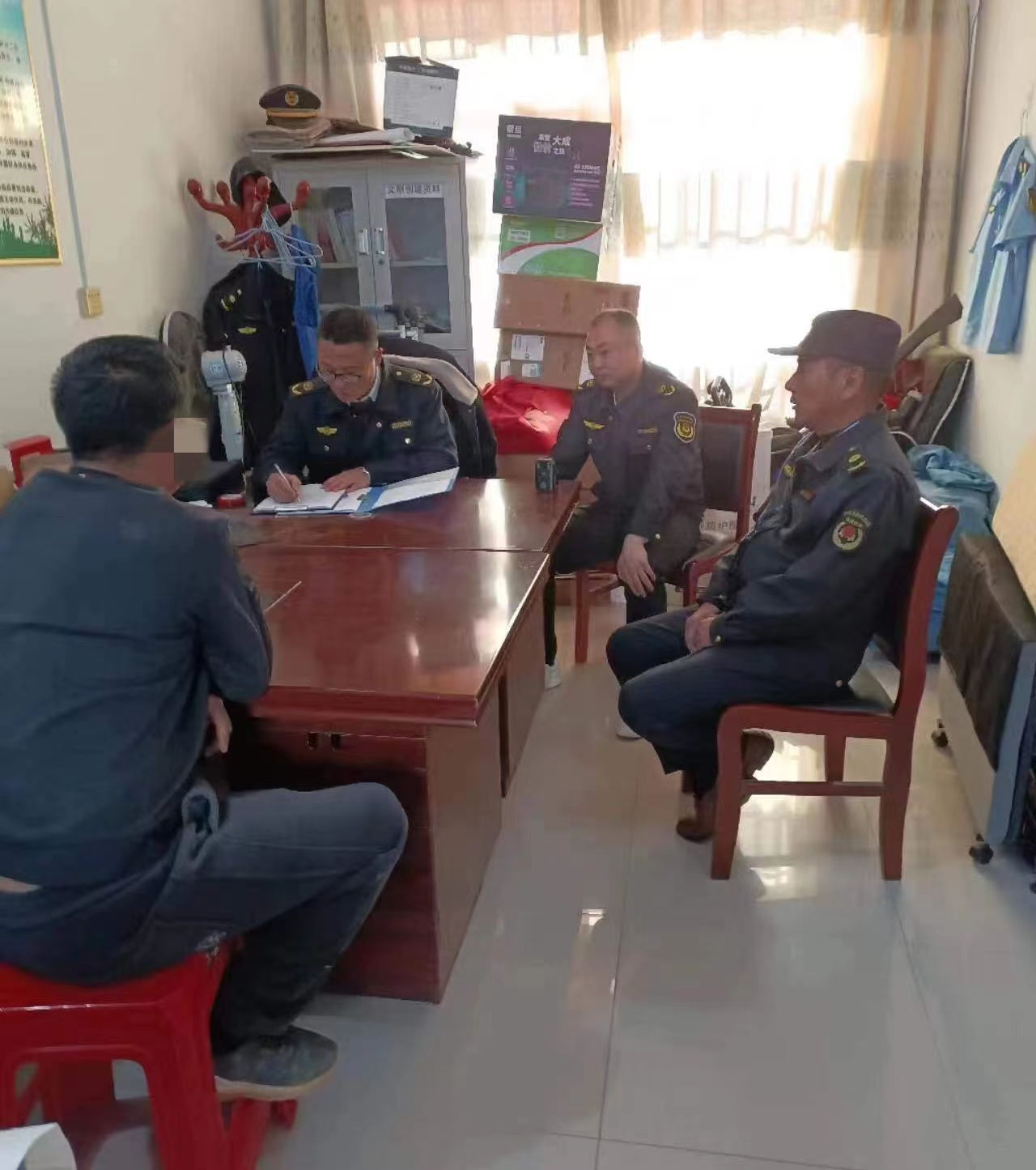 近日,莽张镇综合行政执法大队执法人员夜晚巡查中发现,天湖村村民吴某某正在用传送带向一辆农用三轮车装送河砂。执法人员在现场立即制止违法行为,依法扣押吴某某的盗采河砂作业工具,并迅速展开调查。