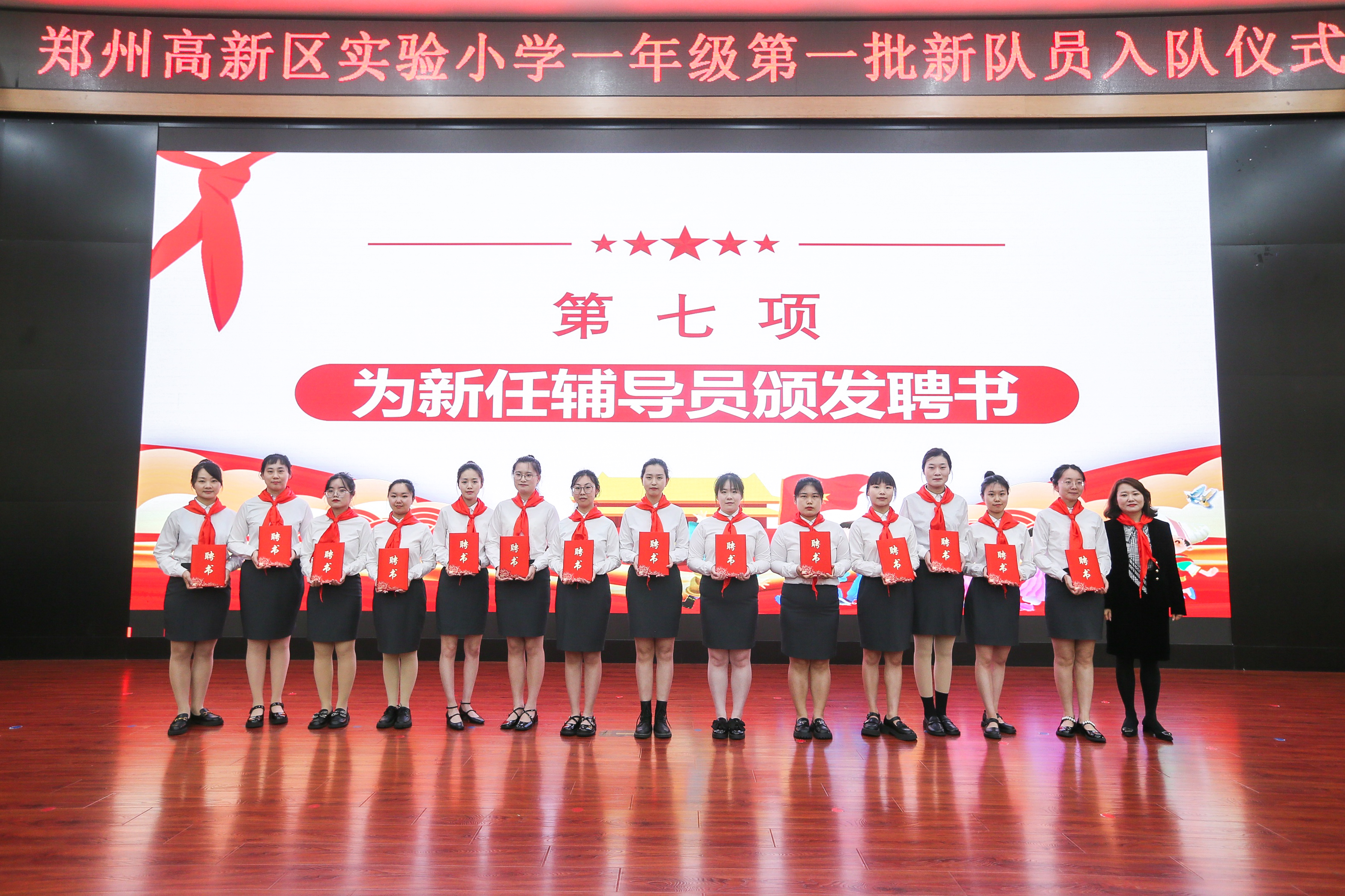 栉风沐雨秉初心,砥砺奋进续华章。副校长董江辉为一年级各中队授中队旗,孔薇为新任辅导员颁发聘书,中队旗的交接传递着沉甸甸的责任,一张张聘书传递着为党育人的教育情怀。