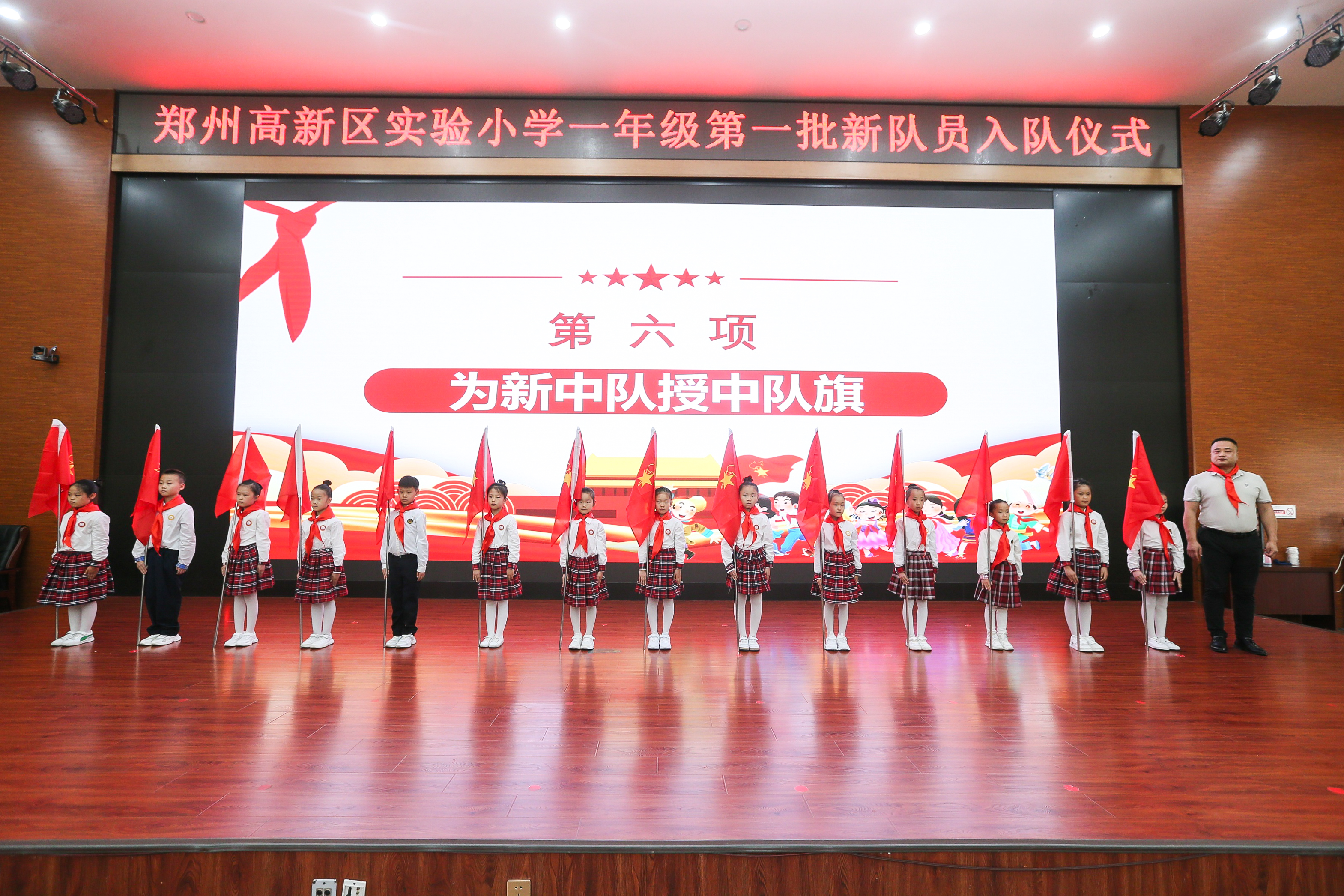 5月30日下午,在郑州高新区实验小学的新队员入队仪式上,该校学生先给大家先上了一堂党史课。红色情景剧《星火燎原》,演绎着革命事业的艰苦卓绝,道出了和平盛世的来之不易。短短的几分钟内,不管是《小英雄王二小》中的放牛郎王二小,还是《刘胡兰》中年仅15岁的刘胡兰,他们面对敌人的威逼利诱,所表现出来的机智、勇敢、宁死不屈的精神,都被实小学子演绎的淋漓尽致。在场的每一个人,无不被孩子们用心演绎的情景剧传达出的红色气息所点燃。这段情景剧不仅仅是一段表演,更是实小学子与革命先烈的赤子之心在交汇碰撞。儿童志高远,梦想正启航。共同见证这一神圣时刻的有来自郑州高新区梧桐办事处党工委委员、办事处副主任崔双菊,郑州高新区实验小学第五届校级家委会副主任敬然,郑州高新区实验小学第五届校级家委会成员张正权。