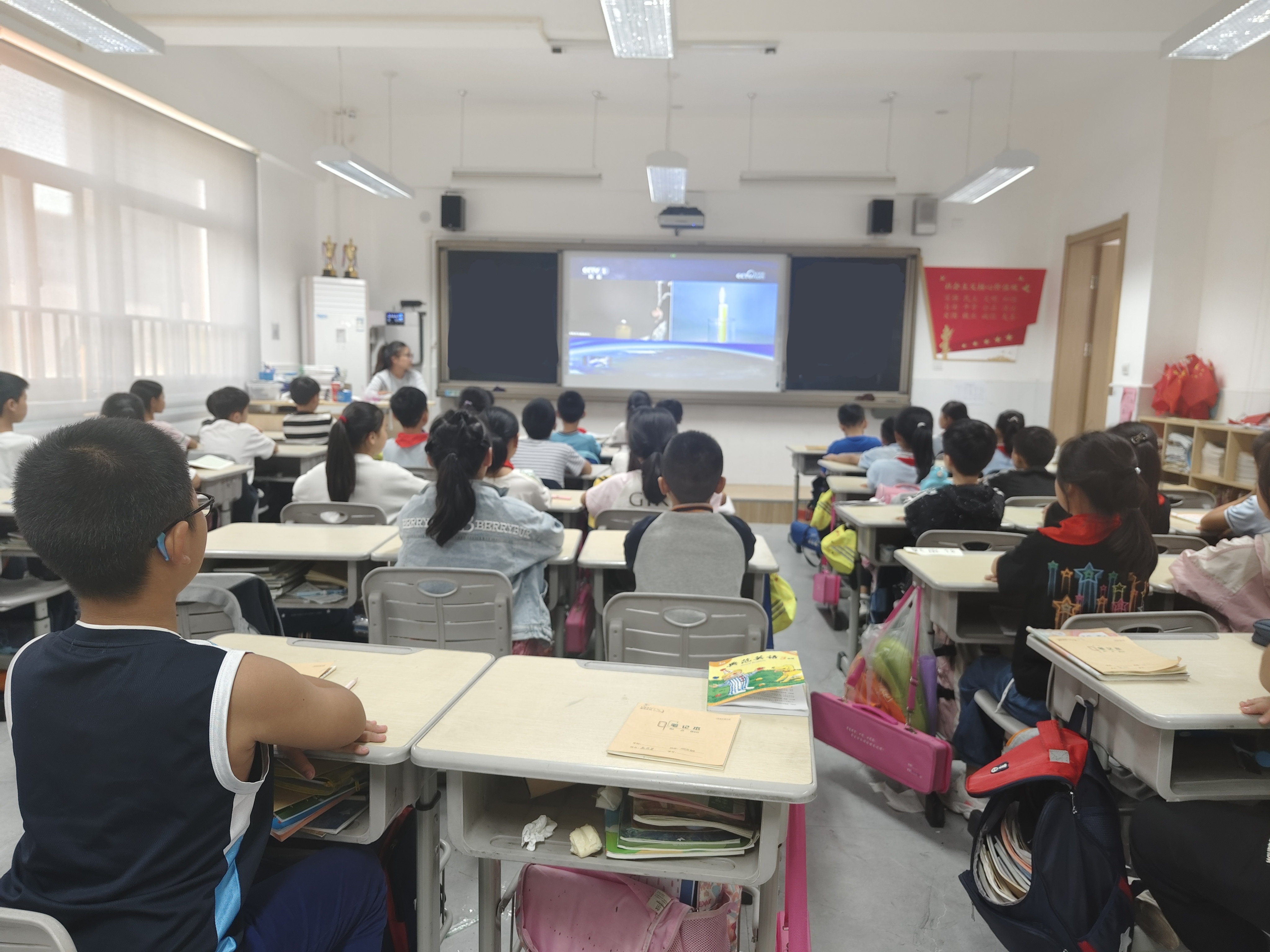 9月21日15时45分,郑州市中原区西悦城二小悦同学们观看“天宫课堂”直播活动,来自太空空间站的一堂奇妙生动的天宫课堂,点燃着他们心中的航天梦。