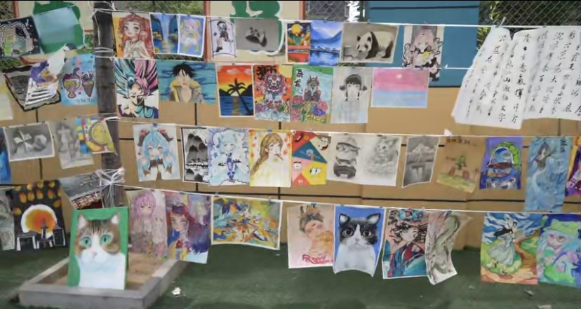 除了动态的舞台展示,操场上的社团成果展示和艺术作品展示也吸引了众多同学驻足观看。篮球、轮滑、人工智能等社团的展演让现场观众连连赞叹。而艺术作品展示区则展示了同学们的书画才华,中国画、线描画、动漫、装饰画和书法等多种形式的作品,彰显着小小艺术家的独特视角和创意。
