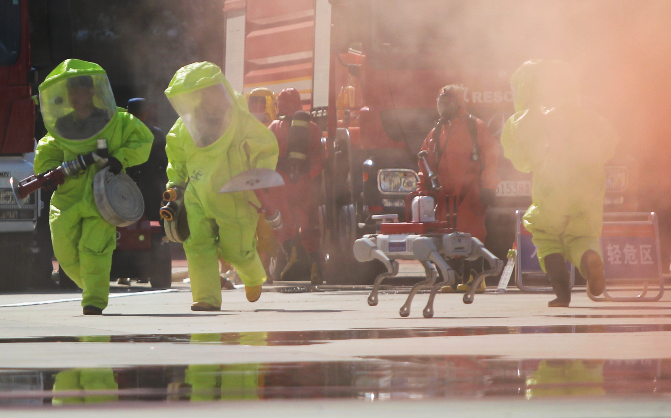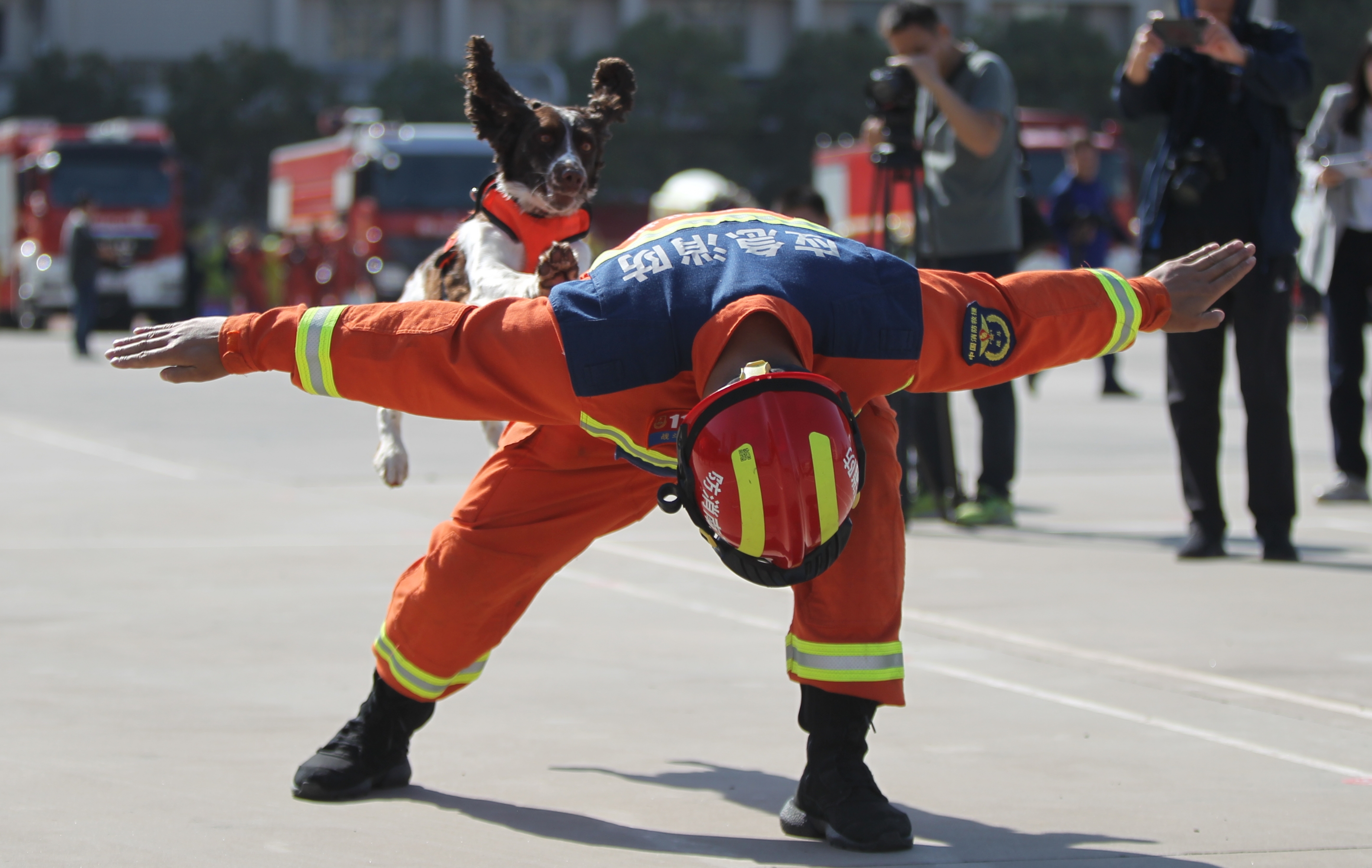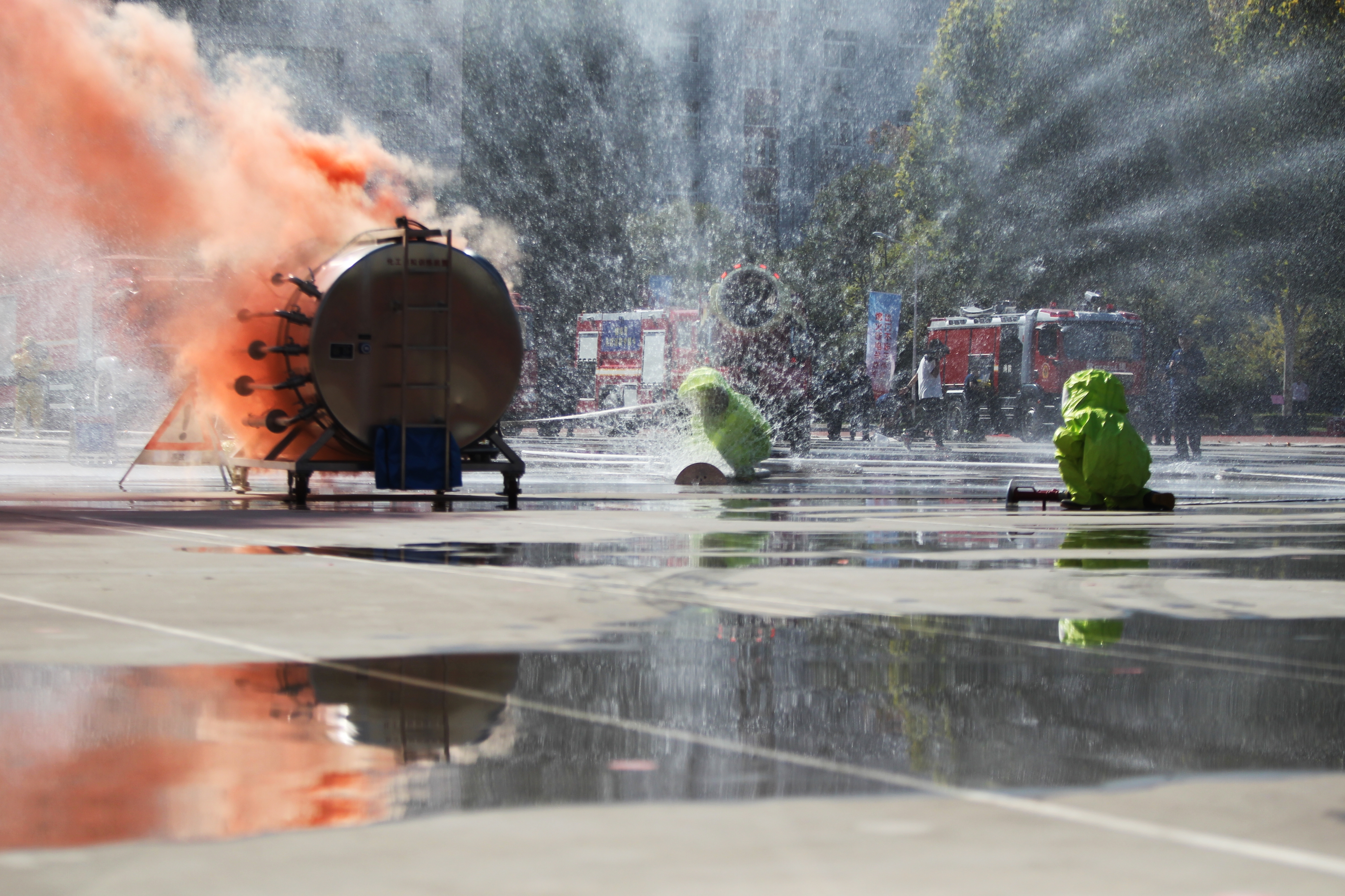 练兵千日、用兵千日,常年备战,从不懈怠。活动现场灭火救援训练成果及装备革新项目演示依次进行:一车两枪操、综合破拆操、搜救犬服从与障碍技术、枪炮协同灭火操、无人机高层灭火操、纵深灭火救人操、化工事故处置操……各种消防演示、演练,赢得了现场观摩群众的阵阵掌声及喝彩。