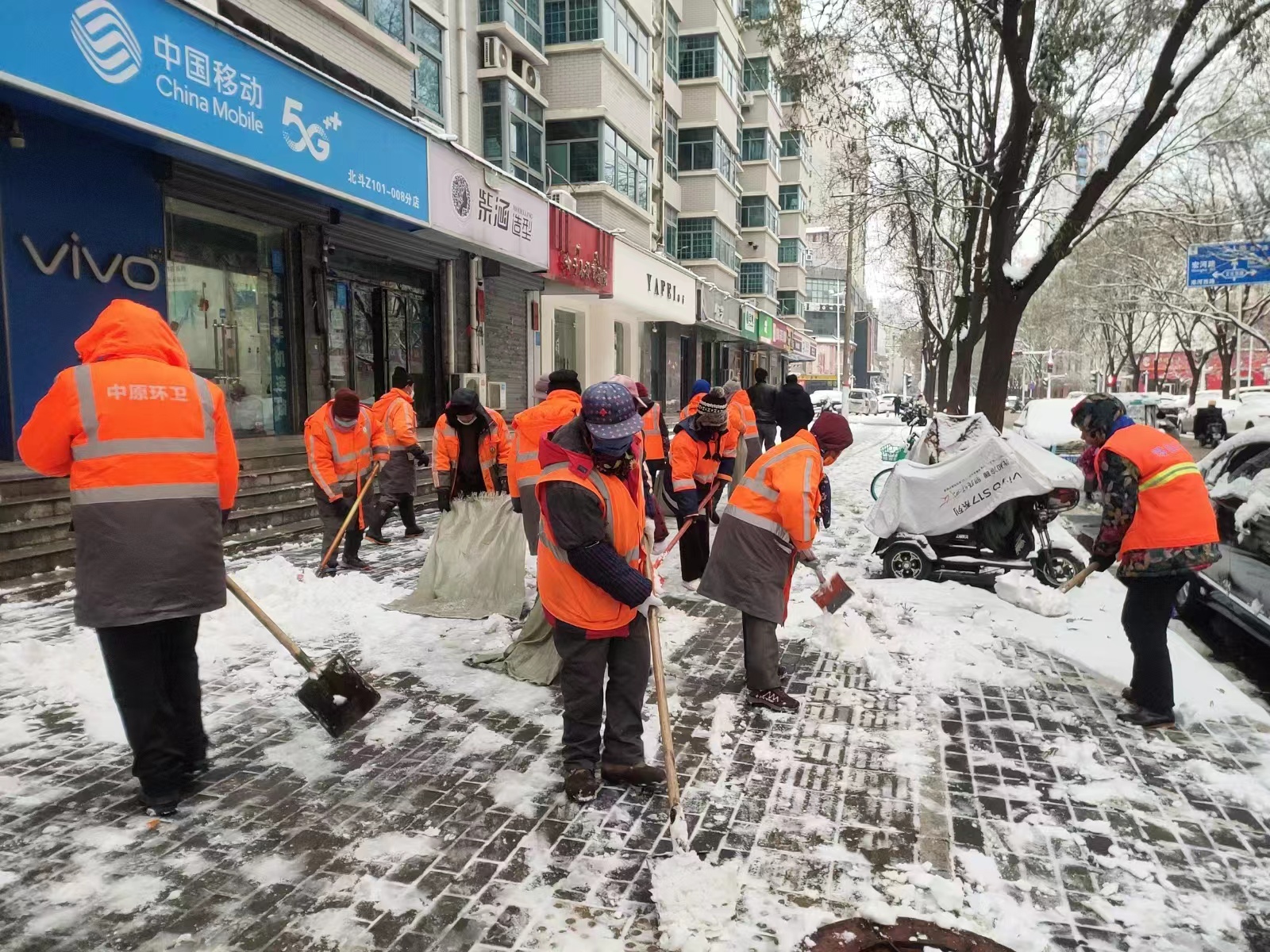 迅速反应,有序恢复市容秩序。责任领导深入联系分包街道,一线督导、靠前指挥,对除雪各项准备工作进行再强化、再完善、再动员,组织街道办事处干部职工开展清冰除雪减灾防灾工作,切实维护好辖区人民生命财产安全和生产生活秩序。属地街道办事处合理调配力量,组织环卫工人全员上岗,按照边下边清、雪中路通、先通后净、由主次干道向支路背街延伸的总体要求,重点围绕中原路、建设路、嵩山路、桐柏路、秦岭路等重点路段和高架桥上下口、小区出入口、公交站台等人员密集区域开展清冰除雪工作,以最快速度将积存冰雪清理干净。同时,针对雨雪冰冻天气带来的影响,对辖区内主次道路、沿街标牌、工地围挡设施等进行地毯式排查,确保应急处置工作落实落细、保障到位。
