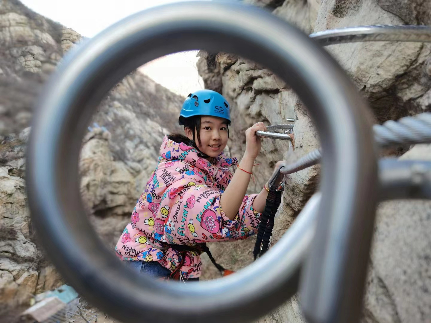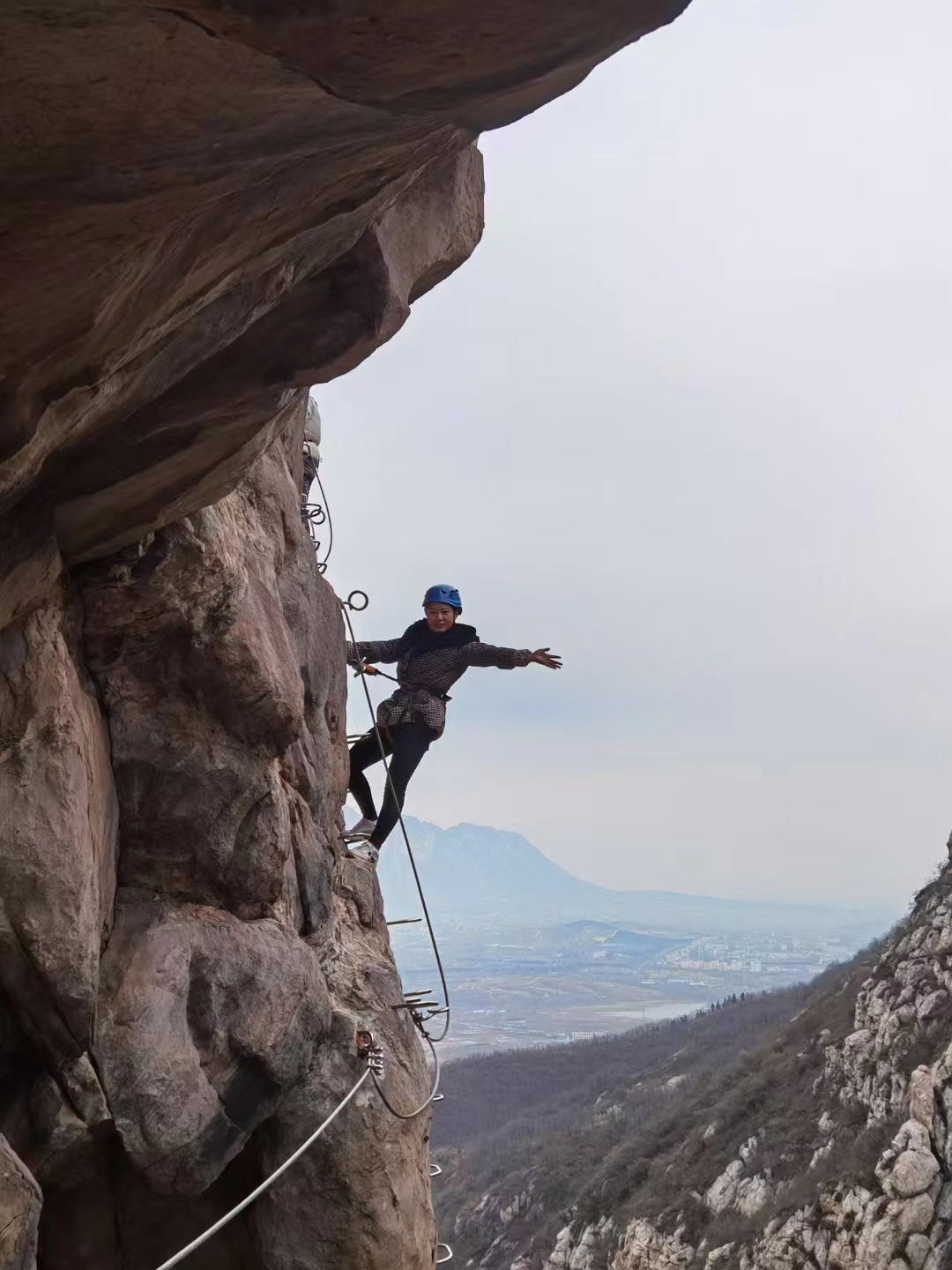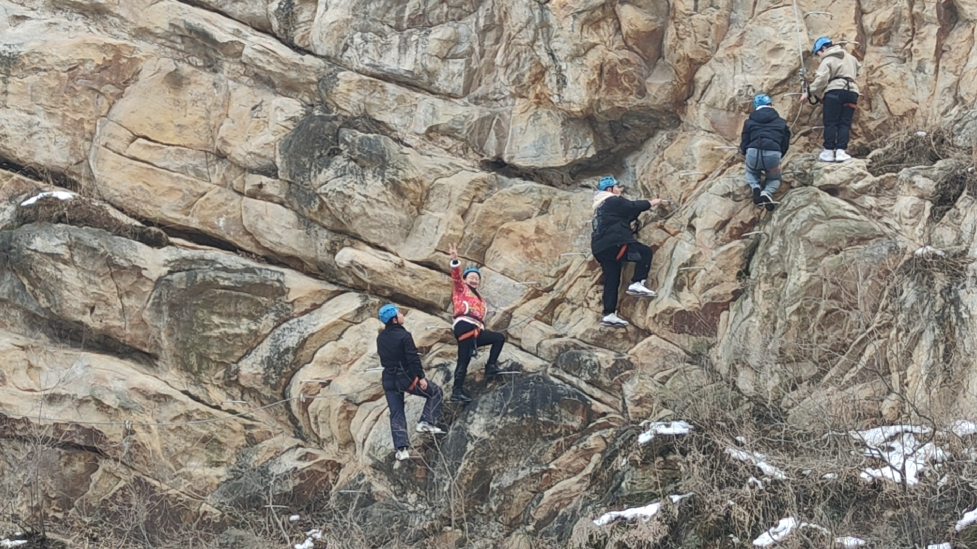 “爸爸快看,半山腰有‘蜘蛛侠’........”伴随着一孩子的尖叫声,记者随着孩童手指的方向远远看到,100米开外的崖壁上一身穿花棉袄的‘蜘蛛侠’正在半山腰攀爬,走近才发现原来这是嵩山地区的已飞拉达体验基地。